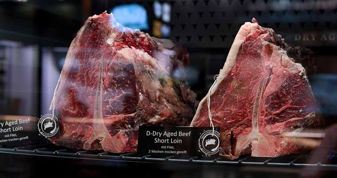 Die Trockenreifung (Dry Aged), bei der das Fleisch bis zu sechs Wochen am Knochen bleibt, sorgt dafür, dass es an Geschmack und Zartheit gewinnt. Der Verlust von etwa 20 % des Eigengewichts während der Reifung ist ein natürlicher Prozess, der das Fleisch noch aromatischer macht. Die Reifehaut hält den Saft im Fleisch, was zu einem saftigen und geschmackvollen Endprodukt führt. Nach der Reifung wird das Fleisch pariert und ist bereit für die Gastronomie – ein wahrer Genuss für Fleischliebhaber!